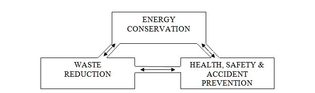 The technical community, particularly the engineering profession, has expanded its responsibilities to society to include the management of environmental issues employing pollution prevention approaches. The term pollution prevention is defined by some as that process or operation that attempts to reduce or eliminate environmental problems. Unfortunately, the term pollution prevention has come to mean different things to different people. Although there are numerous areas of environmental concern that are incorporated under the pollution prevention umbrella, Theodore(1) has defined three areas of pollution prevention that need to be included in any environmental management analysis. The first of these areas is energy conservation (EC). EC programs have resulted in cost-saving measures that have directly reduced waste production. Thus, energy conservation is an integral part of pollution prevention since a reduction in energy consumption corresponds to less energy demand and, consequently, less pollutant generation. The second and third areas of concern are waste reduction (WR) and health, safety, and accident prevention (HS&AP)(2), respectively. A pictorial representation of this relationship is provided below in Figure 1. Although both the WR and HS&AP issues are partially addressed in this paper, the main focus is EC.